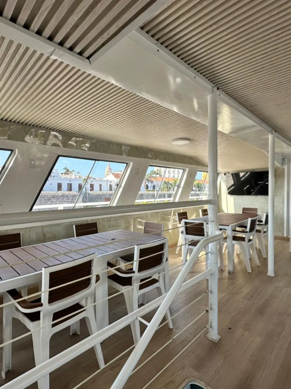 Ambientes: 2 niveles (salón cerrado con aire acondicionado y segunda cubierta panorámica al aire libre)