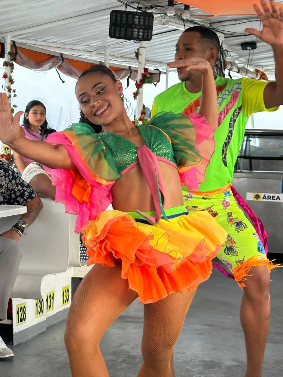 Durante 3 horas de recorrido, disfruta de una experiencia llena de sabor y energía: te recibiremos con una cerveza bien fría, el brindis perfecto para comenzar la rumba. A bordo te esperan DJ en vivo, shows folclóricos con ritmos novembrinos, bailes típicos, y una animación que pondrá a todos a gritar con orgullo: ¡Viva Cartagena!