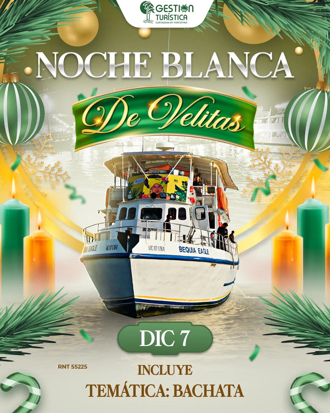 Este 07 de diciembre celebra el Día de las Velitas en la bahía de Cartagena a bordo del majestuoso Bequia Eagle, una noche donde la música, las luces y la alegría se unen en el mejor ambiente de la ciudad.